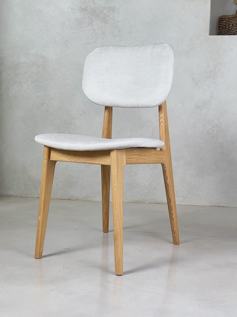 Chair 81 cm of solid oak and fabric modern soft seat natural white Mevis