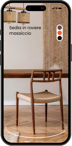 Scopri come i nostri mobili in legno massello si adattano perfettamente alla tua casa con la nostra innovativa funzione di realtà aumentata. Basta utilizzare la fotocamera del tuo dispositivo per visualizzare i nostri prodotti direttamente negli spazi che desideri arredare.